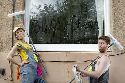 Buff and Sheen is a comical roaming dance performance about two imaginative window cleaners presented by MoonSlide for pupils with additional support needs and performed through a closed window.
